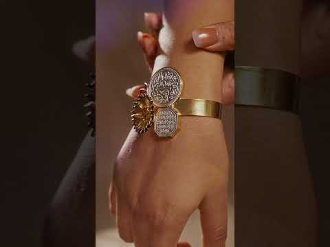 A one of its kind jewels inspired by the virtue of versatility, different shapes put together to tell a perfect story of the spring. The hand beaten plates of Shiv Mudra and engraved arabic alphabets collated together with finesse and poise.