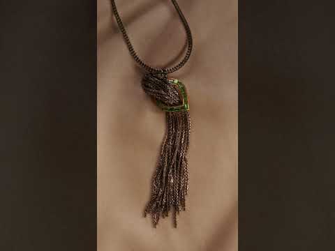 Elevate your style with this dazzling neckpiece from our Party Wear Collection. This exquisite accessory features a cascading design adorned with sparkling Green Swarovski crystals. Whether you're gracing a formal event or celebrating a festive evening, this neckpiece will add a touch of luxury to your ensemble.